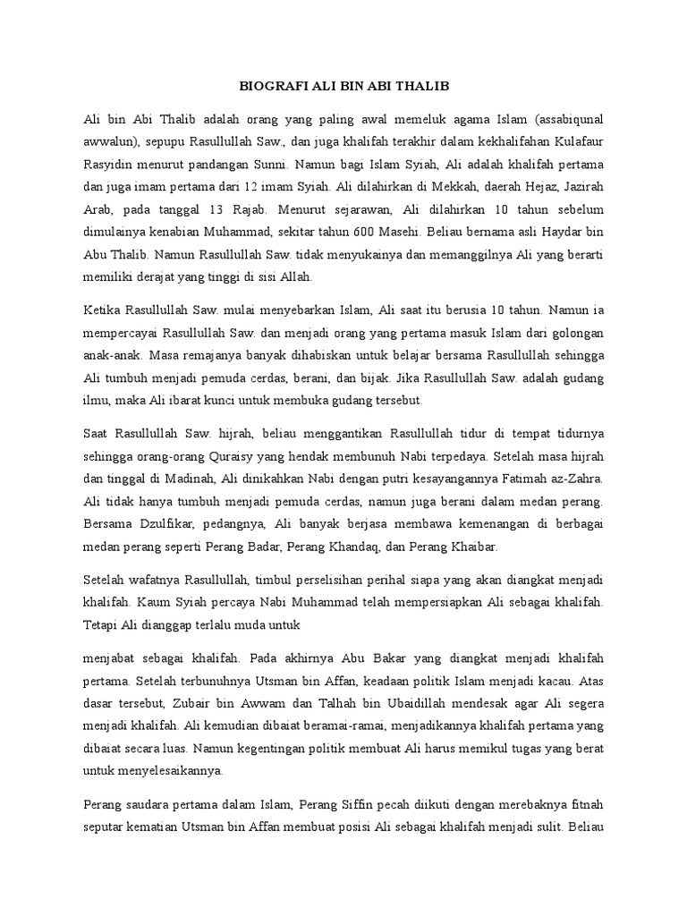 Doc Biografi Singkat Ali Bin Abu Thalib Ratnasari Tyas Academia Edu